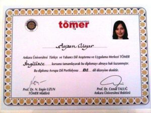 - آزمون دیپلم زبان ترکی: برای سطح C1 برگزار میشود. اگر داوطلب بتواند این آزمون را با موفقیت پشت سر بگذارد، دیپلم زبان ترکی به او اعطا میگردد که نشاندهنده تسلط بسیار بالا بر زبان ترکی است.